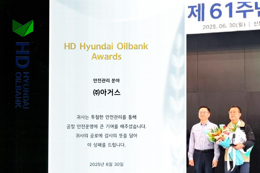 HD현대오일뱅크 제61주년 창립 기념식에서 우리회사가 우수 거래처(안전 관리 분야)에 선정되었습니다.