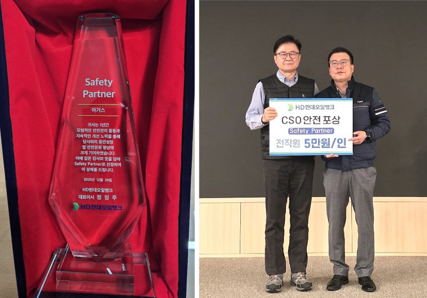 올해 6월 아거스가 비파괴검사 업체 최초로 현대오일뱅크의 안전 관리 우수 거래처로 뽑혔다는 소식은 전한 바 있습니다만